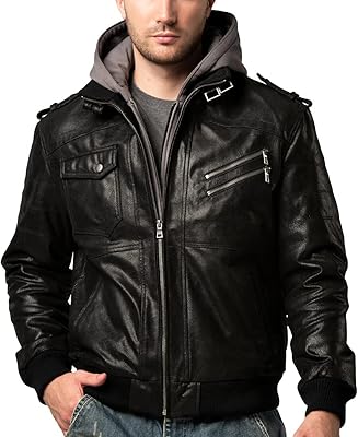 FLAVOR Men Brown Leather Motorcycle Jacket with Removable Hood