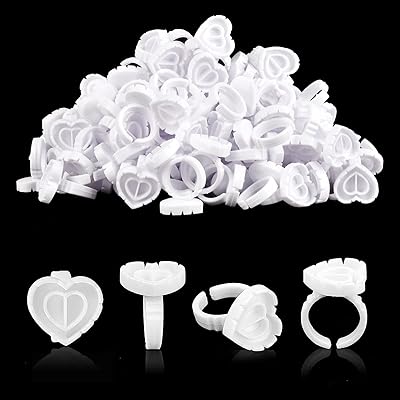 NXJ INFILILA Glue Rings for Eyelash Extensions 100PCS Disposable Rings For Lashes Lovely Heart Shape, Makeup Plastic Nail Art Glue Cups Lash Extension Supplies for Eyelash Extensions White